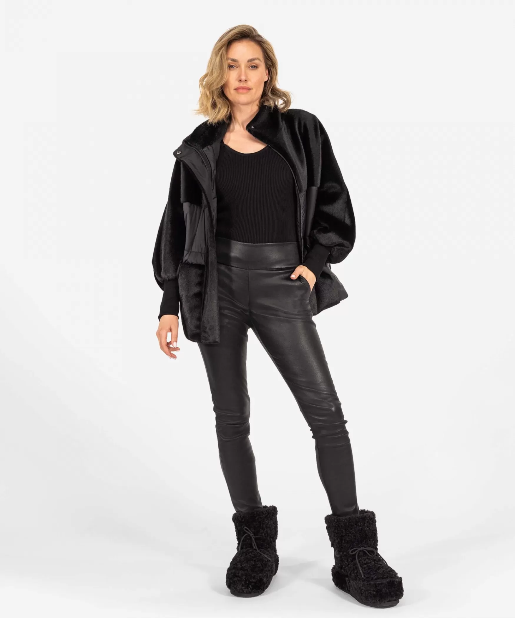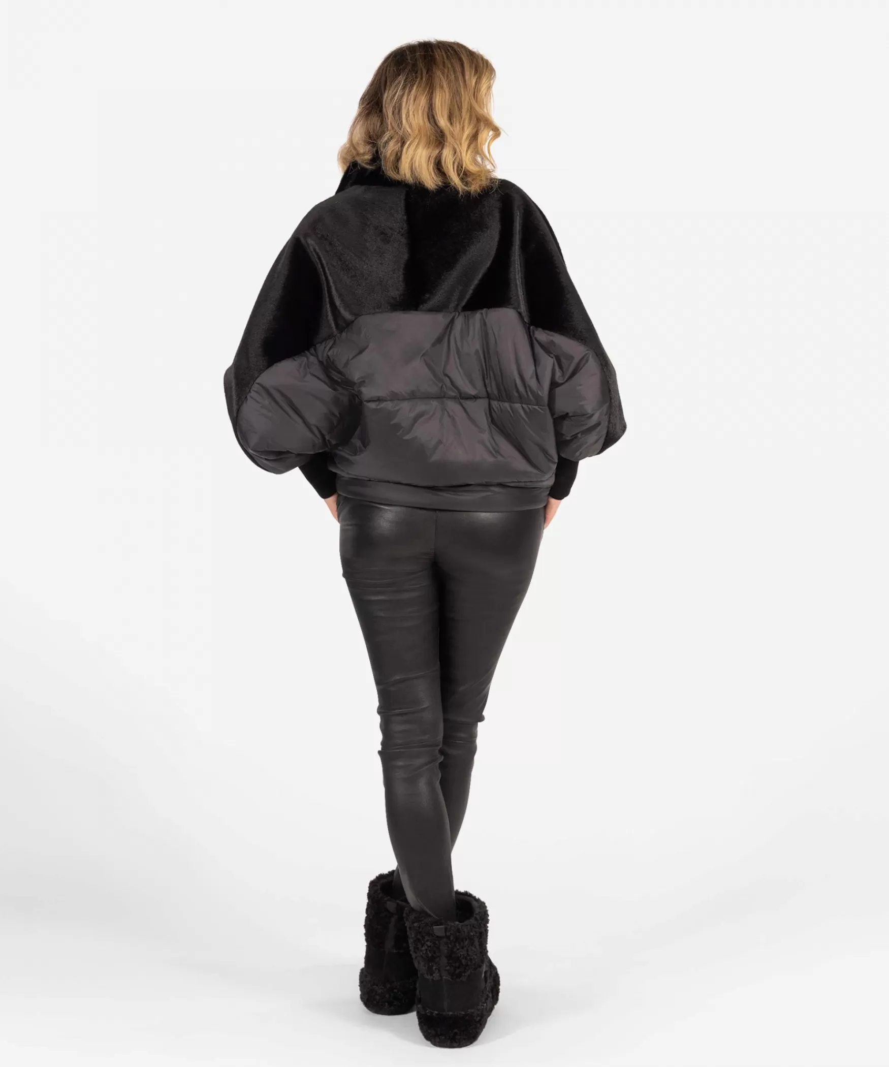 DE COLLINS JACKET IN BLACK|Op zoek naar een comfortabele jas met een fashionable uitstraling? Dan is de Collins jas in de kleur zwart misschien iets voor jou. De jas is gemaakt van nylon in combinatie met faux fur. Met de ruime pasvorm is de jas perfect te dragen met laagjes eronder, die je lekker warm houden. De elastieke banden aan de onderkant van de jas en mouwen zorgen voor een sportieve look. De jas heeft een col en twee steekzakken op het voorpand. Stylingtip: combineer de Collins jas met een strakke leren legging zoals de Polly pants.
