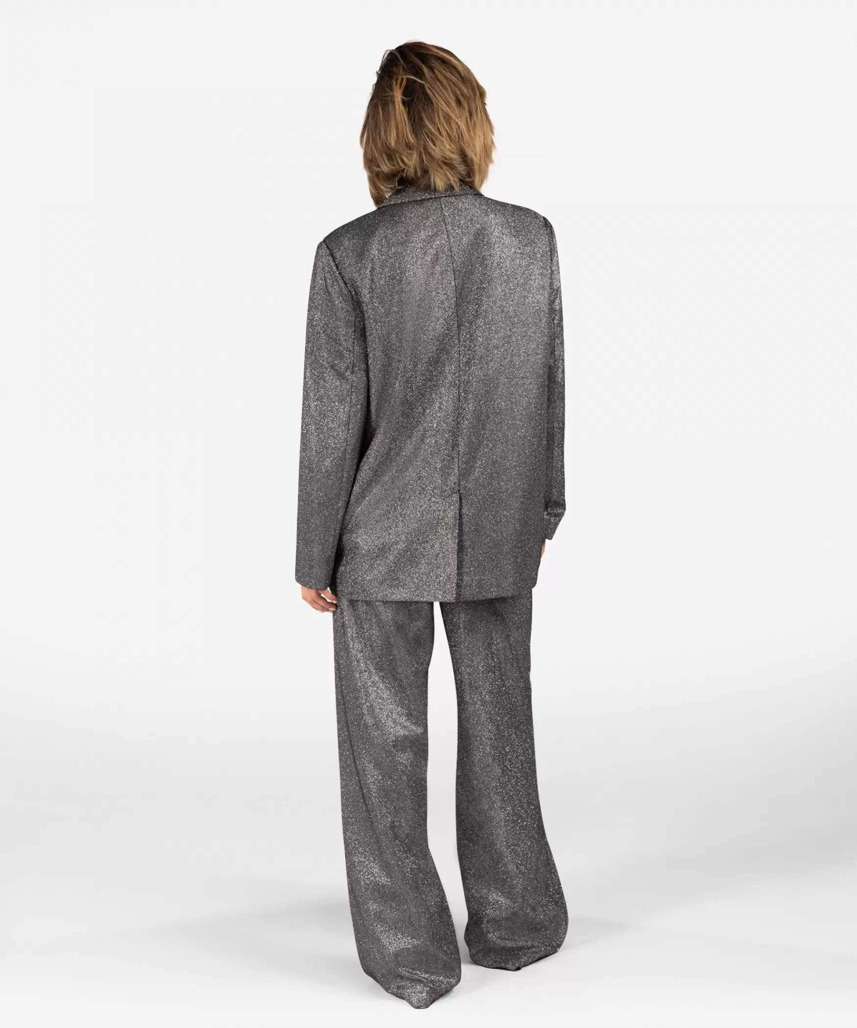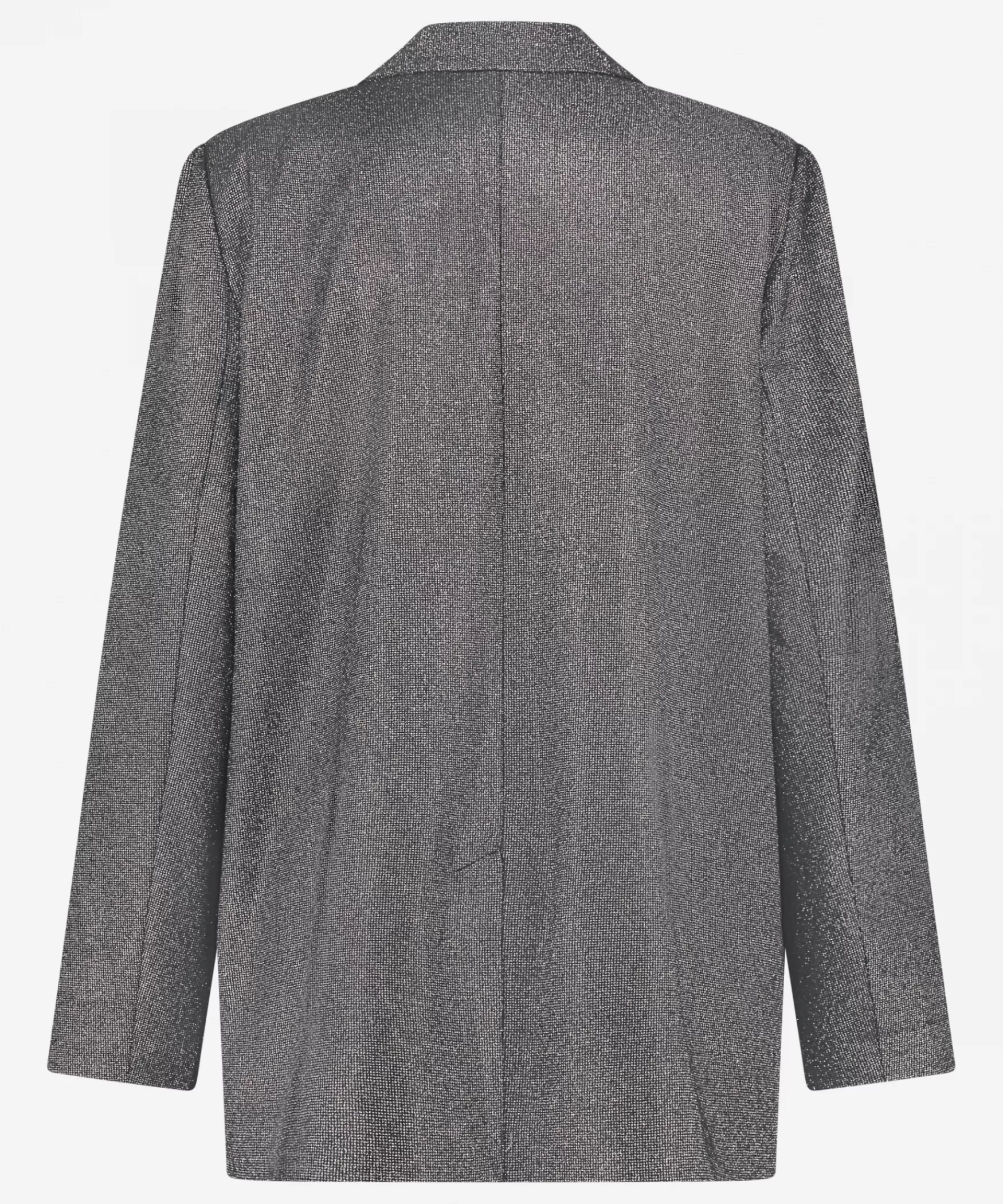 DE JOLSY BLAZER IN SILVER|Say hi to onze favoriete oversized Jolsy Blazer. Een blazer vol met zilveren glitters en schoudervullingen. De blazer heeft aan de voorkant twee klepzakken en aan de achterkant heeft de Jolsy een kleine split voor extra draagcomfort. Combineer de blazer met de bijpassende Puyo Pants. Ook is de blazer geweldig om te dragen met je favoriete jeans! Get ready for festive season!