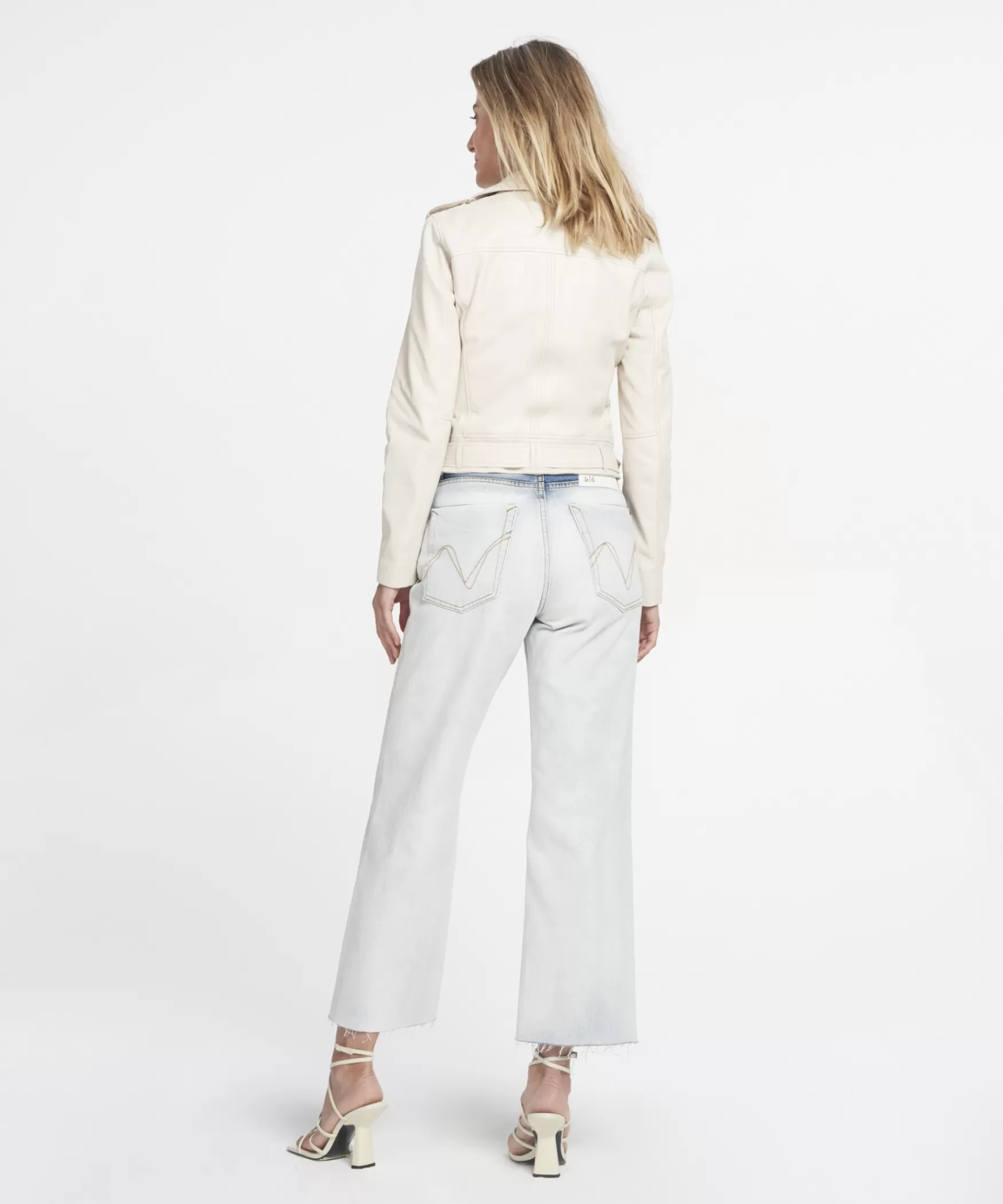 De Moss biker jas in White Linen |De Moss biker jas is een aansluitende jas met een revers kraag, vier steekzakken met …