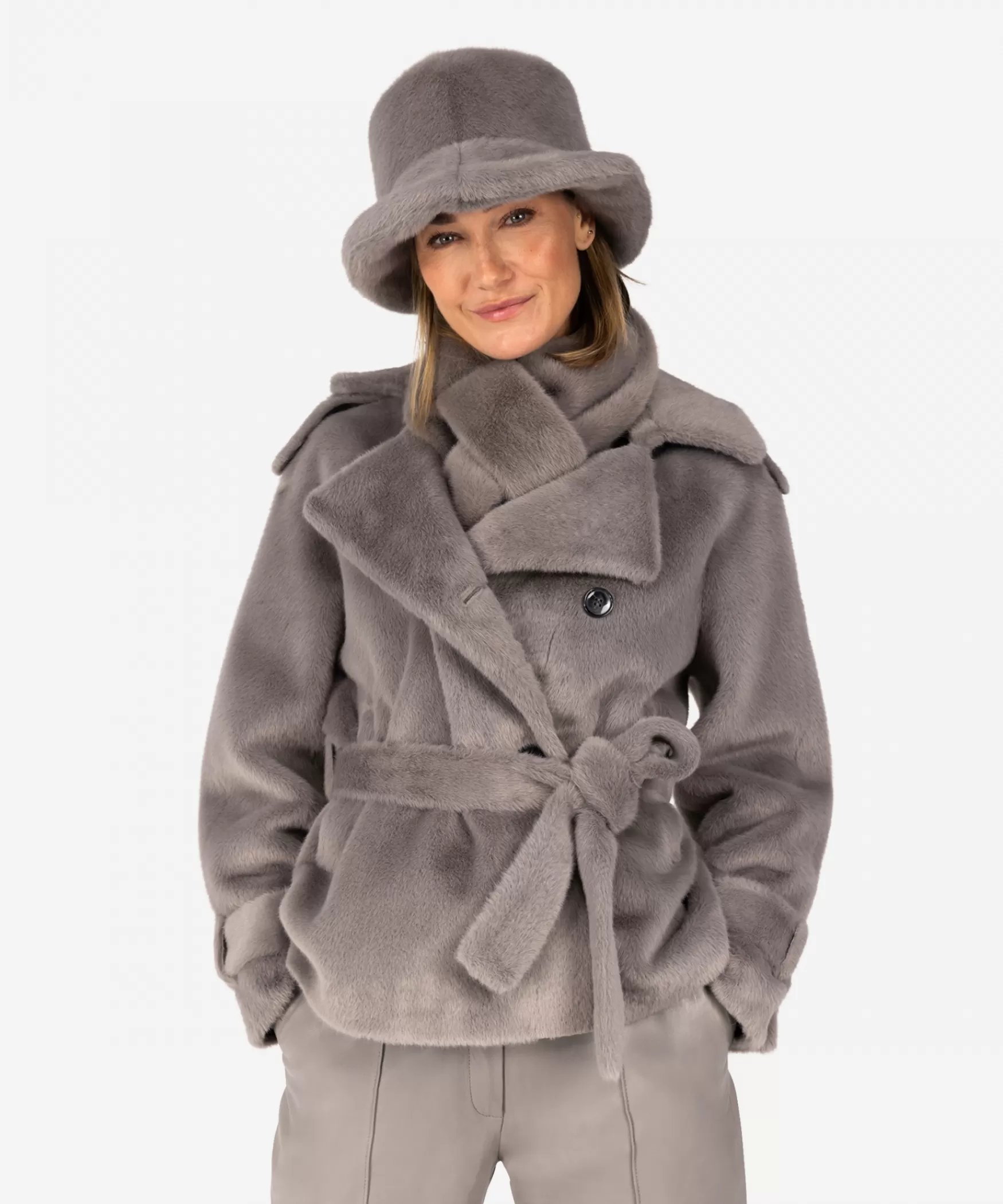 DE BUCKET HAT AMY IN CLASSIC GREY|We love bucket hats! De IBANA Amy bucket hat is de ideale accessoire voor een echt fashionstatement. Gemaakt van luxe faux fur, voegt deze bucket hat een speelse en trendy touch toe aan je outfit. Combineer deze met de bijpassende Cristel jas voor een prachtige ton-sur-ton look. De zachte materialen en het veelzijdige ontwerp maken de Amy bucket hat een perfect item om je warm en stijlvol te houden.