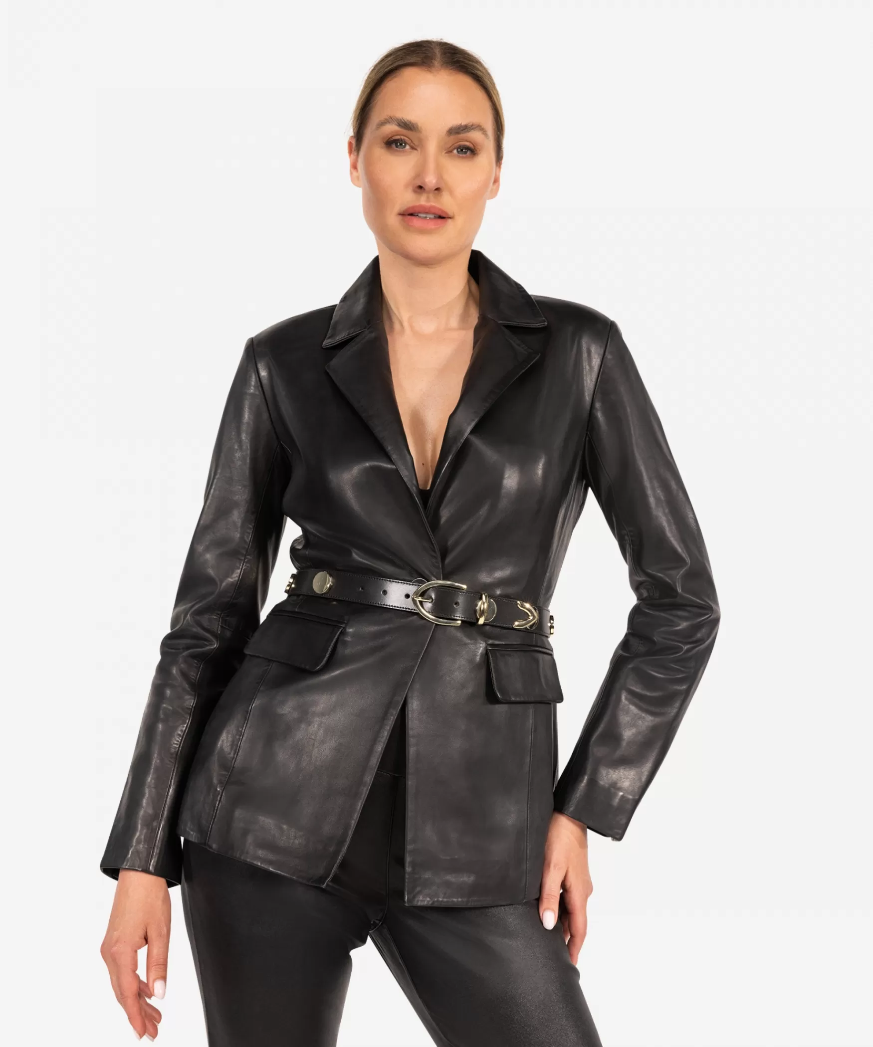 DE ASTY RIEM IN BLACK|Voeg glamour toe aan je outfit met de leren Asty Belt in de kleur Black. De riem is voorzien van p…
