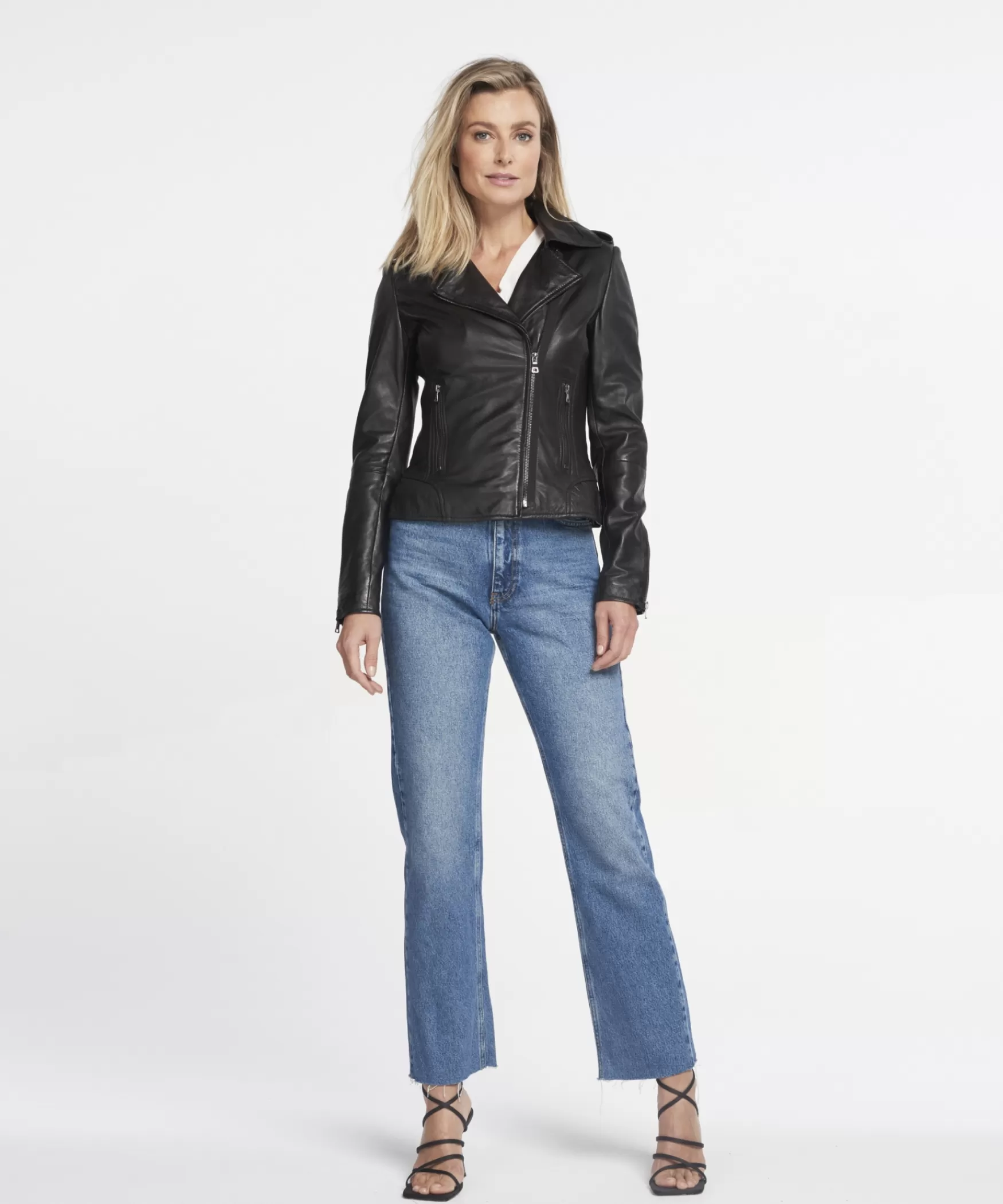 De Bear Blaze bikerjas met zwarte ritsen |Deze bikerjas heeft een two tone effect in het leer. Dit komt door de wax behandeling die de jas op het laatst krijgt rondom de naden waardoor er twee leer tonen zichtbaar zijn. De Bear Blaze heeft een schuine rits, epauletten op de schouders en twee rits zakjes op de voorkant. Het is een basic en tijdloos jasje die zowel binnen als buiten gedragen kan worden. De lengte van het model valt net iets over de broekrand en heeft verder een normale fit.