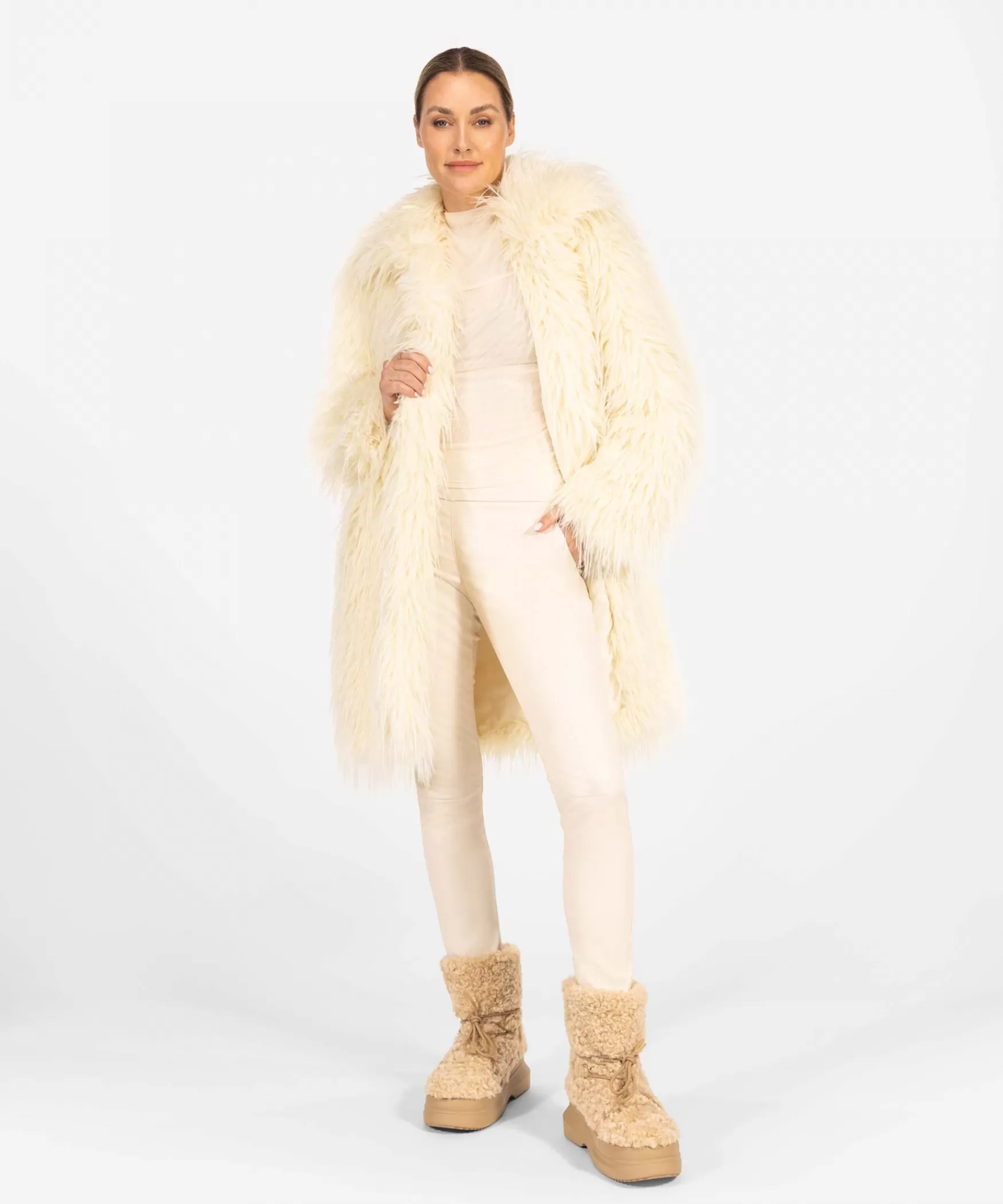 DE FAUX FUR CELESTE JAS IN COCO WHITE|Fabulous de winter door? We got you covered! Maak kennis met onze eye-catching faux fur jas, de Celeste, in de prachtige kleur Coco White. Wat de jas bijzonder maakt is de faux fur kwaliteit die verschillende fluffy lengtes heeft, De lengte van de jas en warme voering houden je deze winter heerlijk warm. Dankzij de houtje touwtje sluiting aan de voorkant kun je de jas open of gesloten dragen, afhankelijk van je voorkeur. Wie warm en fashionable wil blijven deze winter, kan dat zeker met de Celeste.