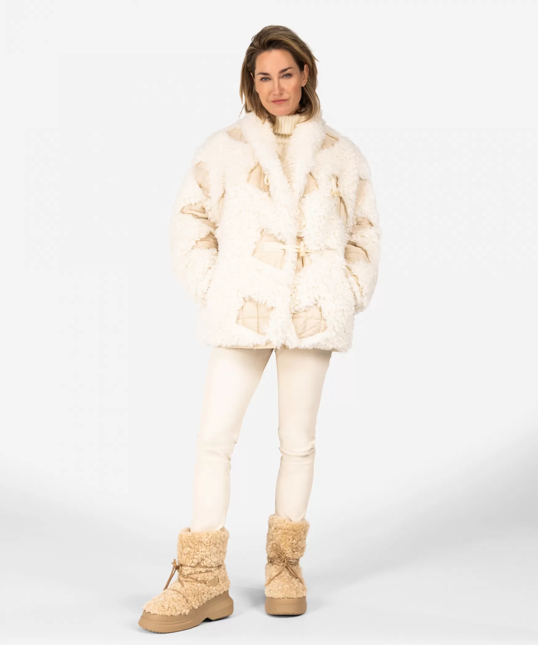 DE CHASE JAS IN COCO WHITE|Trend alert: ook dit jaar zijn faux fur jassen niet weg te denken uit het straatbeeld. Maak kennis met onze Chase Coat in de kleur Coco White. Deze heerlijke warme faux fur teddy jas is aan de binnenkant helemaal gevoerd, dus kom maar op met de koude winterdagen! De Chase heeft nylon doorgestickte details waardoor de jas net dat beetje extra heeft. De jas wordt gesloten door het houtje-touwtje effect. Stylingtip: combineer de jas met onze best-selling Colette Pants en Texany trui in de kleur Coco White. Maak je winterse look af met de faux fur Asyana Bucket Hat.