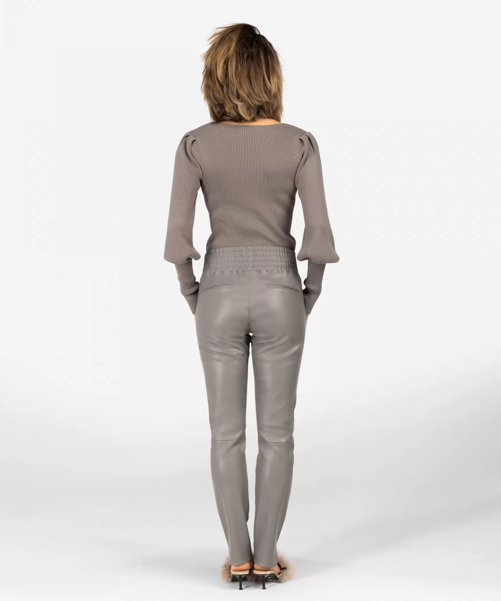 DE COLETTE IN CLASSIC GREY|Onze bestselling broek, de Colette, is terug in de kleur Classic Grey. De stretchkwaliteit welke is bevestigd op het leer zorgt voor een comfortabele pasvorm en zorgt ervoor dat de broek mooi aansluit. De flexibele stretchband zit prettig in de taille. De broek heeft twee steekzakken en splitjes aan de onderkant voor een gemakkelijke instap.