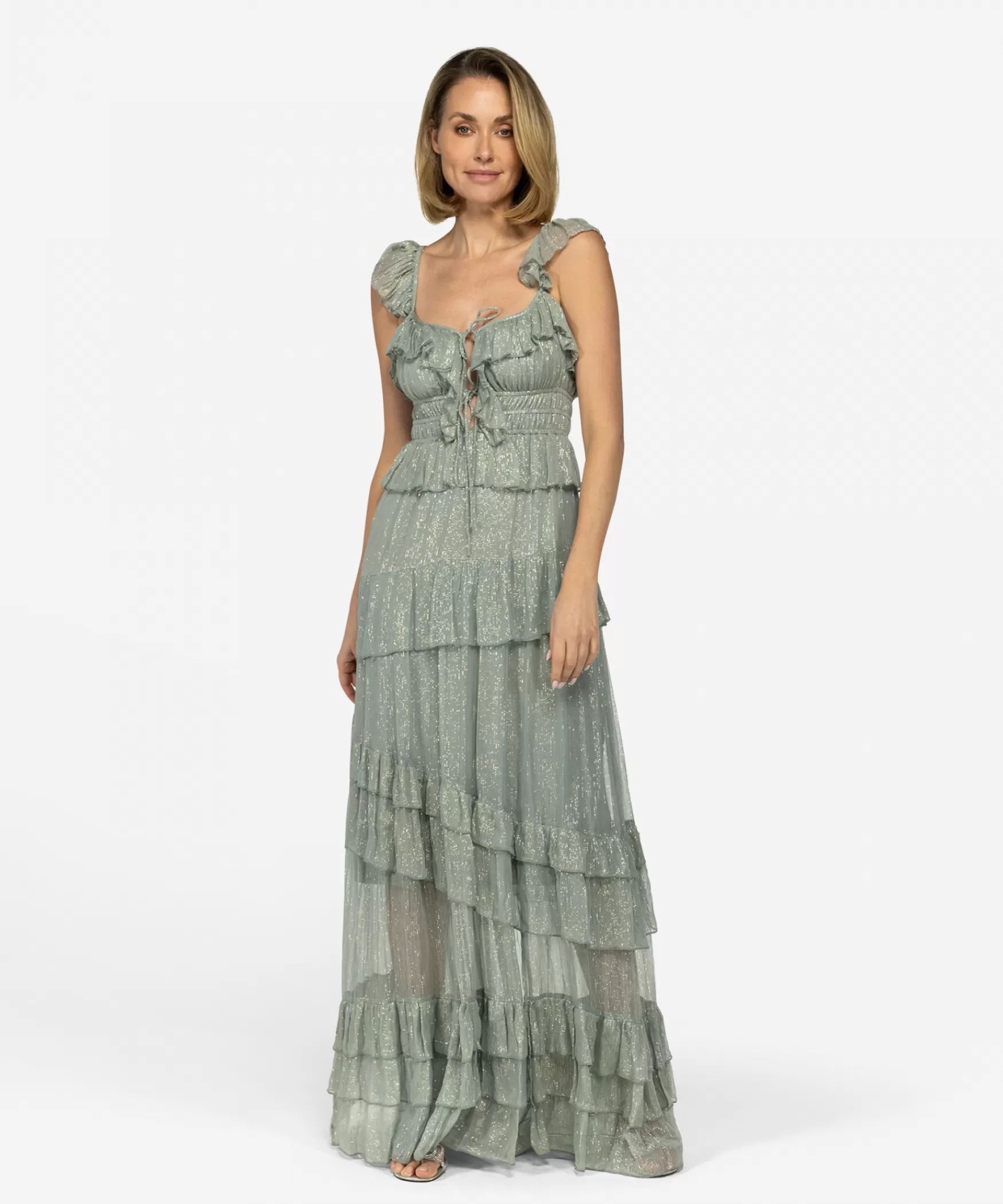 De Danessa maxi-jurk in Blue Haze|Ontdek onze Danessa maxi jurk, gehuld in de opvallende Blue Haze kleur. Een echte must-have dress voor speciale gelegenheden. Deze ruches jurk heeft een vierkante halslijn, inclusief koordjes waarmee je de halslijn (naar wens) verder kunt openen. De elastische band onder de buste zorgt voor een vrouwelijk silhouet voordat de jurk wijder uitloopt. Maak de look af met onze Ambia hakken en you’re ready to go.