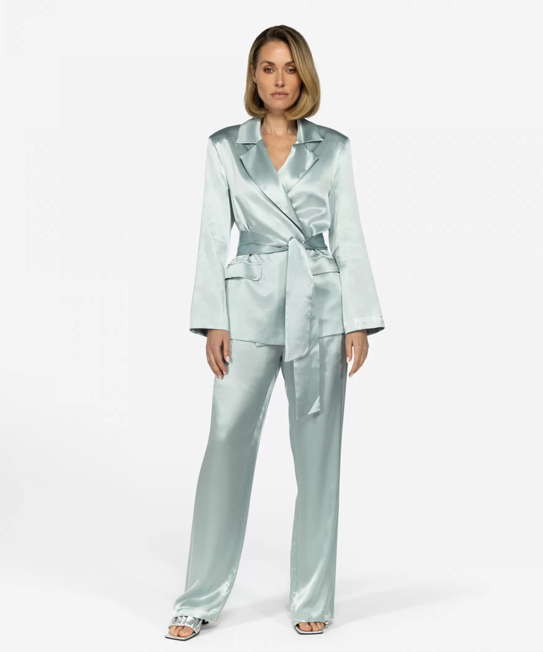 De Francis blazer in Mint Green|Een van onze eyecatching items is de Francis in de kleur Mint green. Deze blazer is gemaakt van soepelvallende viscosestof en is dun gevoerd aan de binnenkant. De blazer heeft een licht oversized fit, maar met de bijpassende tailleband kun je ervoor kiezen de taille te accentueren. Voor een complete look combineer je de Francis blazer met de bijpassende, soepelvallende Francine broek in dezelfde kleur. Maak de look verder af met hakken, en je bent dressed for the occasion!