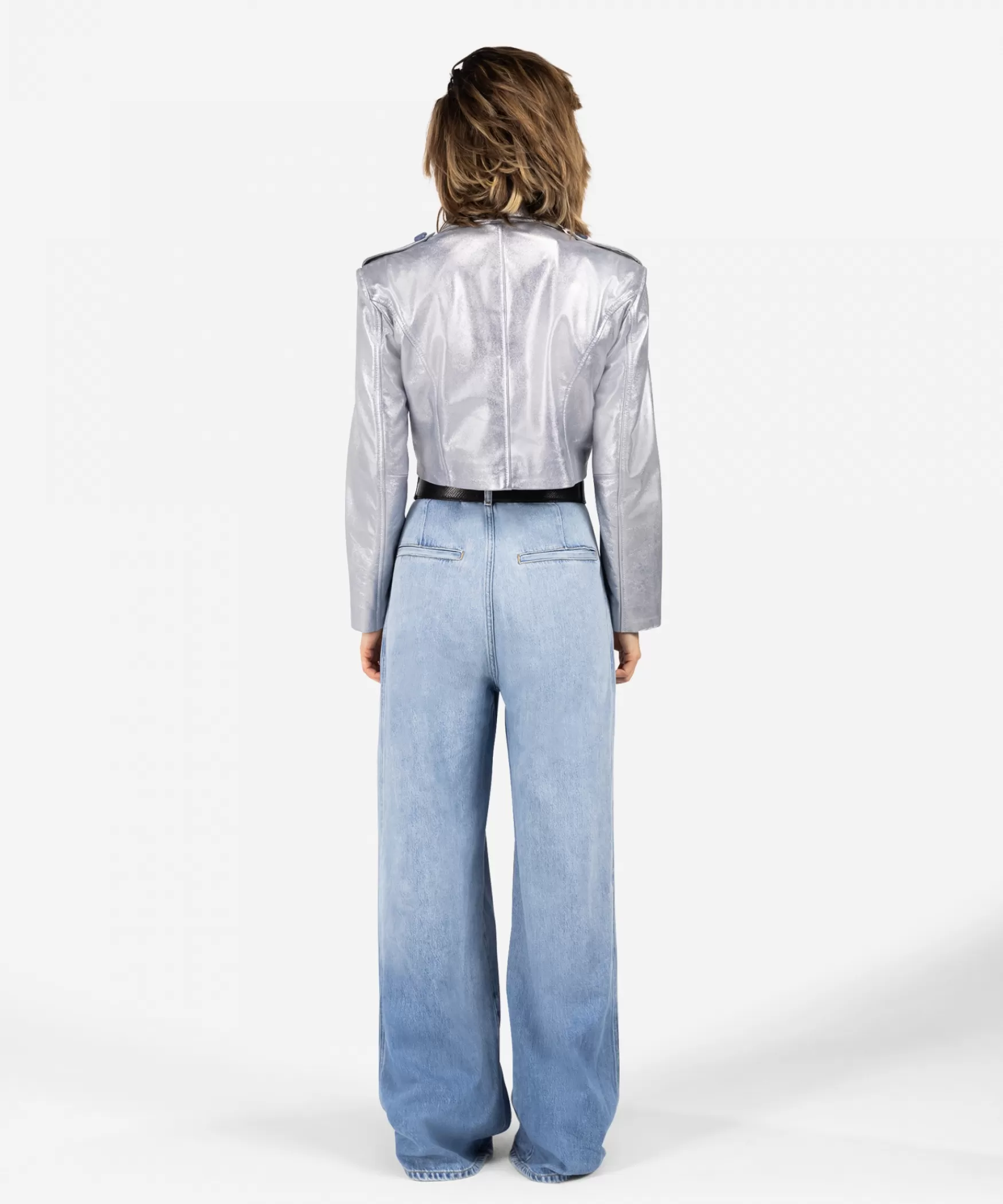 DE JORIN JACKET IN METALLIC STONE BLUE|Dit is onze eye-catching metallic Jorin jacket. Het jasje heeft een cropped non-stretch fit en is gemaakt van boterzacht leer. De schoudervullingen geven het jasje een power uitstraling en aan de voorzijde kan de Jorin worden gesloten met knopen. Je kunt het jasje goed naar verschillende gelegenheden dragen. Ga jij voor een casual look? Combineer de Jorin dan met de Pesha broek en gympen maar wil jij uitpakken tijdens jouw night out? Style het jasje dan samen met onze leren Polly broek in de kleur Black of een mooie jurk en maak je look af met prachtige hakken.