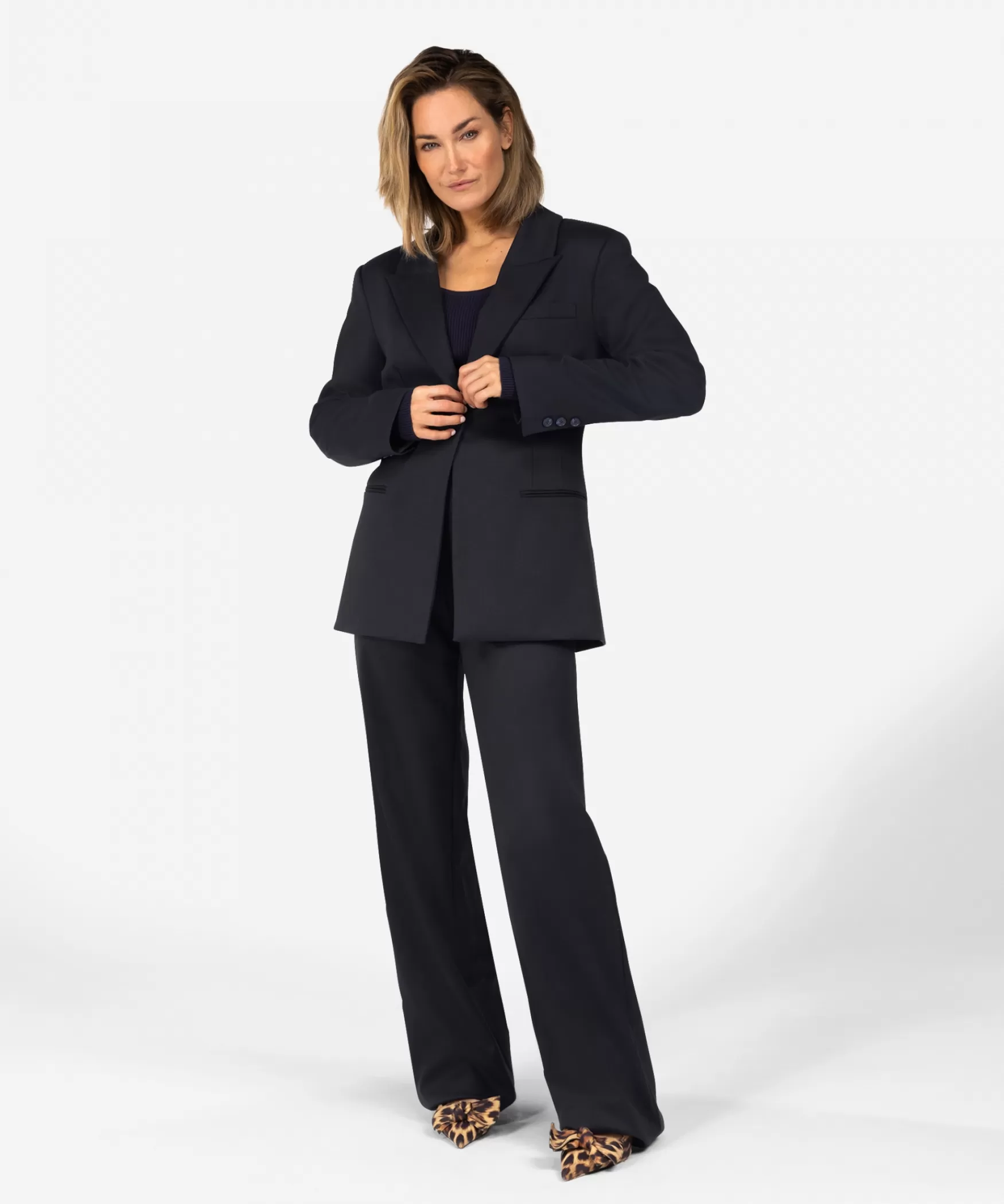 DE JOSE BLAZER IN MIDNIGHT BLUE|Op zoek naar de perfecte blazer? De Jose blazer in de kleur Midnight Blue is geschikt voor de zelfverzekerde en trendy vrouw. Gemaakt van hoogwaardige kwaliteit met lichte stretch, heeft deze blazer een aangesloten pasvorm met knoopsluiting, waardoor je de blazer zowel open als gesloten kunt dragen. Combineer deze blazer met de bijpassende Patty pantalon in dezelfde kleur voor een complete en stijlvolle look.