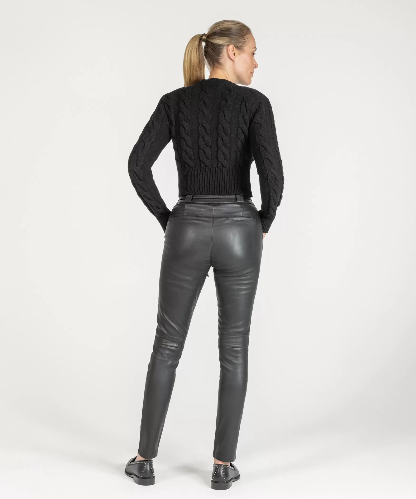De Paulina pants in Black|Ontdek de Paulina, een prachtige aansluitende leren basis broek in de kleur Black. Deze broek …