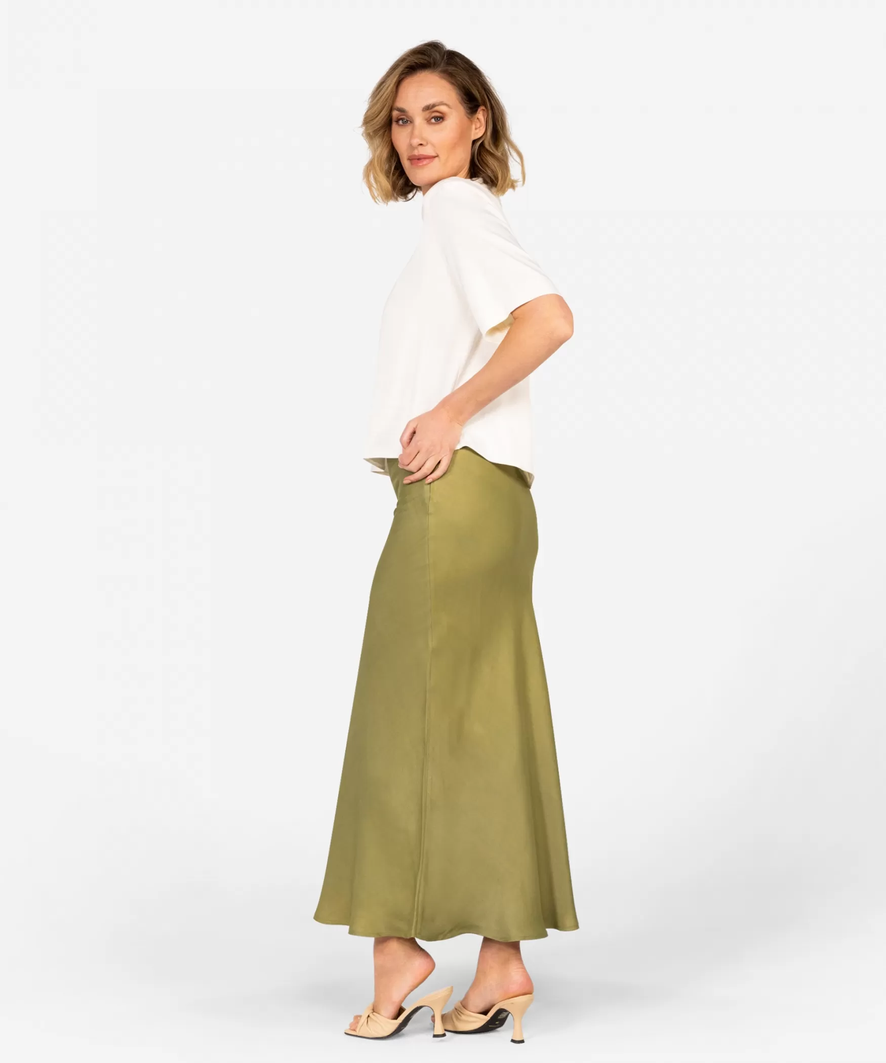 DE SAFIAN ROK IN MOSS GREEN|Dit is onze elegante Safian kokerrok in de kleur Moss green. De rok is gemaakt van soepelvallende viscose en valt tot enkellengte. Voor een casual look draag je de rok met een t-shirt en slippers. Voor een geklede look kan je de rok met een blouse en hakken combineren.
