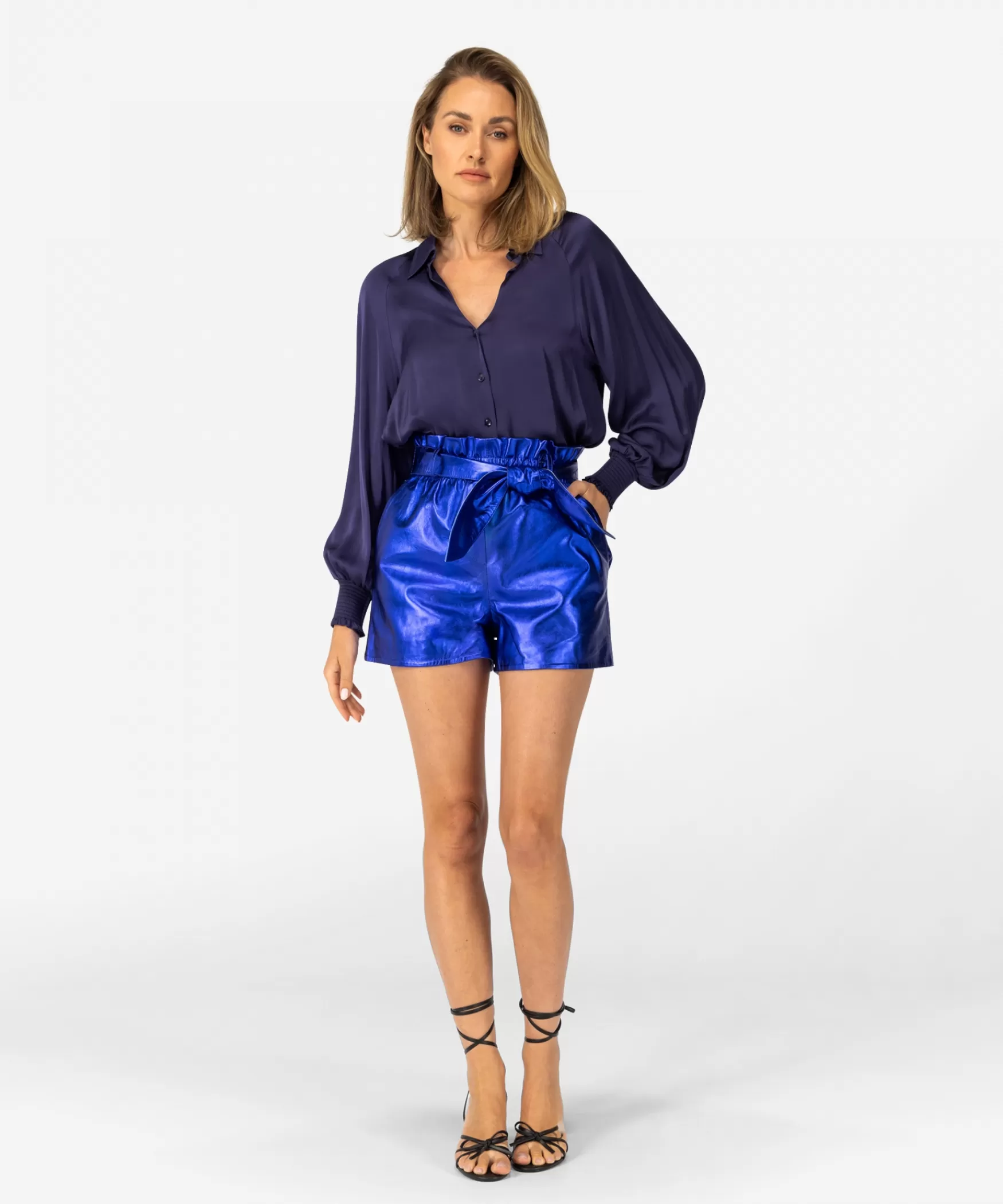 DE SASHA METALLIC SHORTS IN BREEZY BLUE|Maak kennis met de eye-catching metallic Sasha Shorts in de kleur Breezy Blue. Heb jij binnenkort een speciale gelegenheid waarbij je goed voor de dag wilt komen? Met deze shorts steel jij zeker de show! Combineer de Sasha met de basis Emma Blouse en een paar hakken voor een sophisticated look.