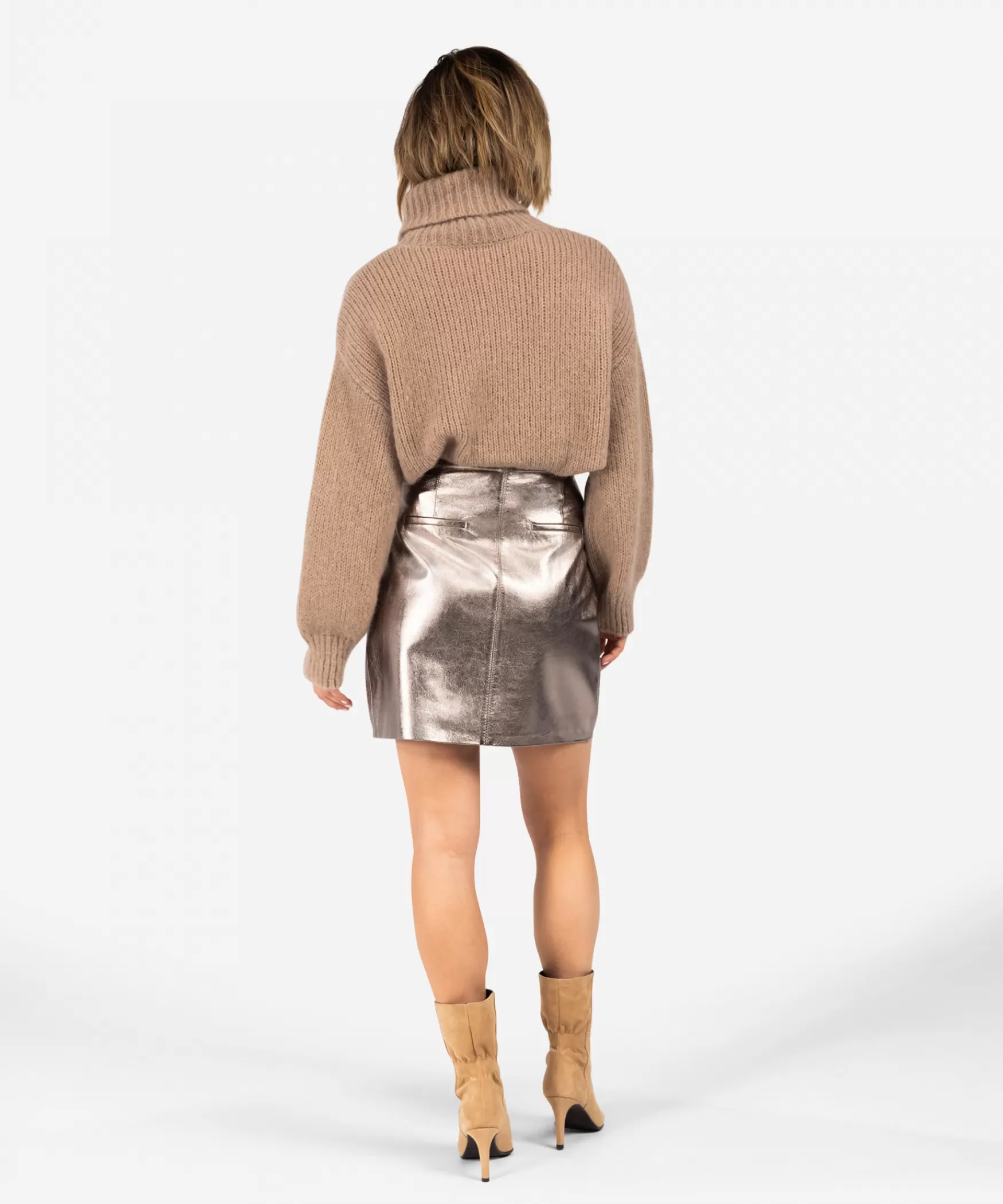 DE SEVILLA ROK IN METALLIC CLASSIC GREY|Maak je klaar voor een fashionable winter met onze nieuwe Sevilla omslagrok in de kleur Metallic Classic Grey. Met de gesp waarmee de rok gesloten wordt kan je rok naar eigen comfort losser of strakker dragen. De Sevilla is gemaakt van hoogwaardig kwaliteitsleer en door de metallic coating zie je er spectaculair uit deze winter! De rok leent zich perfect voor een feestelijke gelegenheid, maar wil jij de rok meer casual dragen? Combineer de Sevilla dan met de Tayla knit in de kleur Beige. Stoere boots en een panty eronder en je bent ready to go!