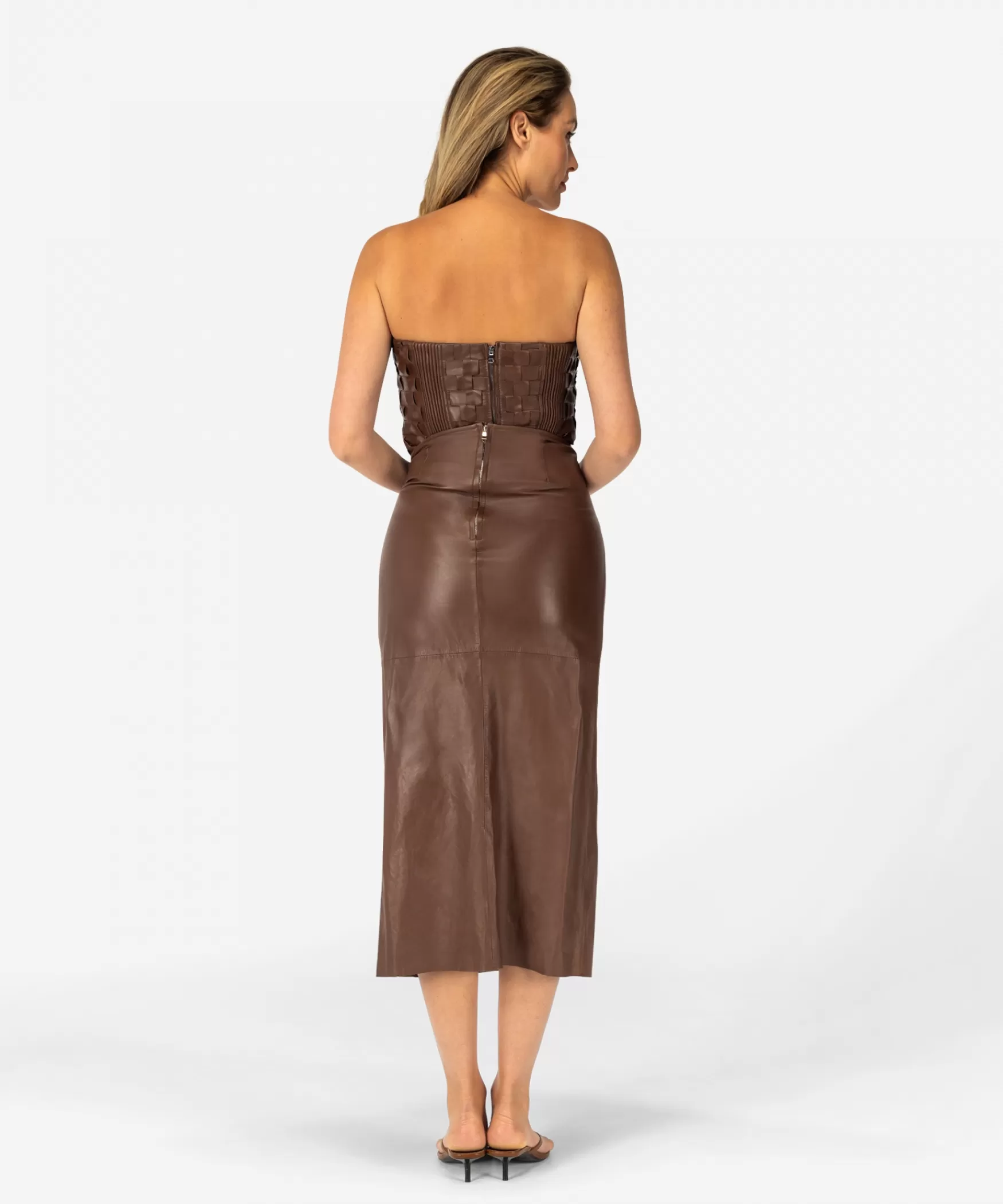 DE STARLYN ROK IN HAZELNUT|De prachtige Starlyn rok in de kleur Hazelnut heeft een aansluitende pasvorm en is gemaakt van soepel leer. De rok heeft bovenaan een prachtig knoop-effect en vanuit daar start een vrouwelijke split. De rok kan gemakkelijk aan- en uitgetrokken worden door middel van een rits die zich aan de achterzijde bevindt. Combineer de Starlyn rok met de bijpassende Taava Strapless Top of Tamiera Top voor een oogverblindende outfit!