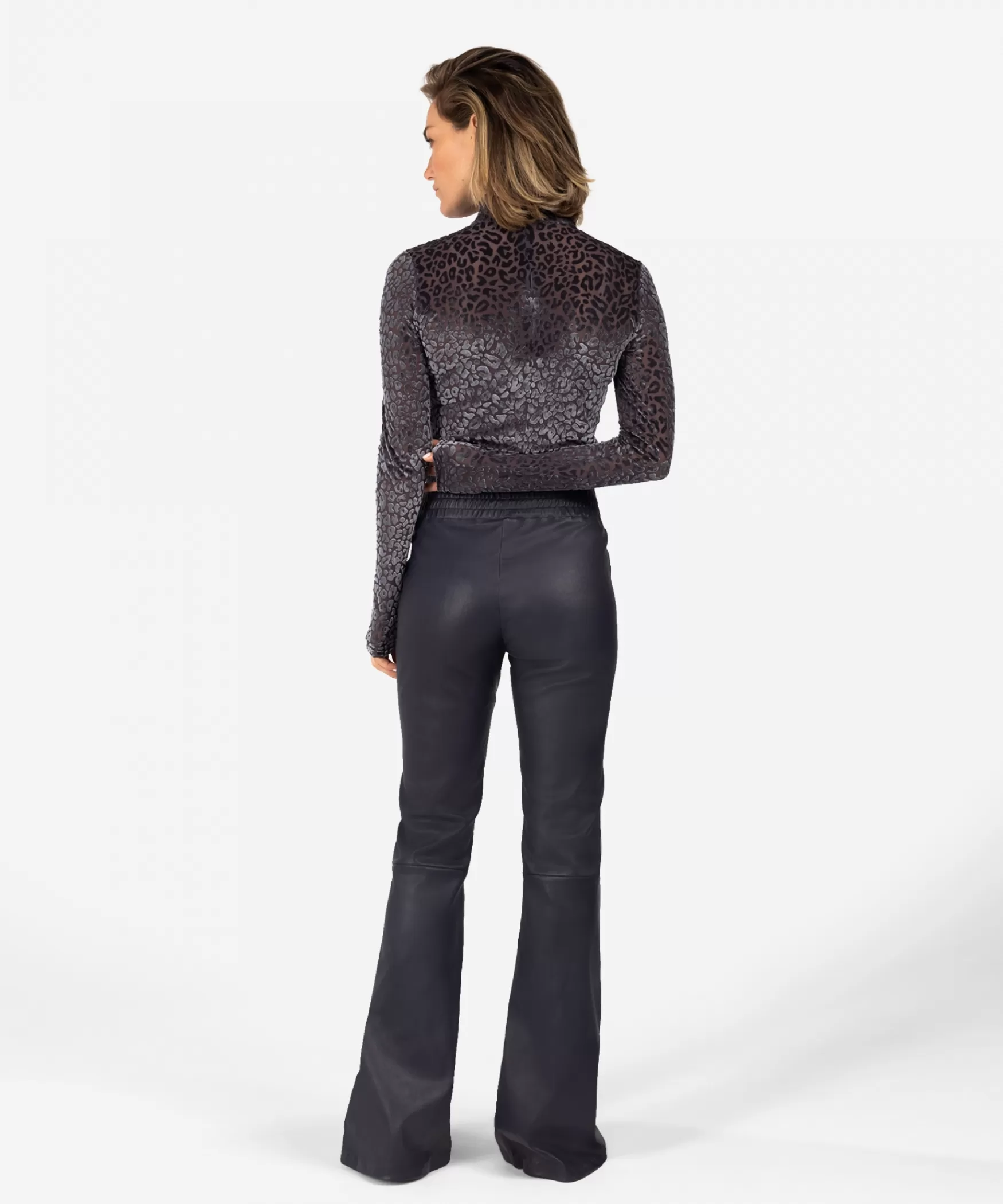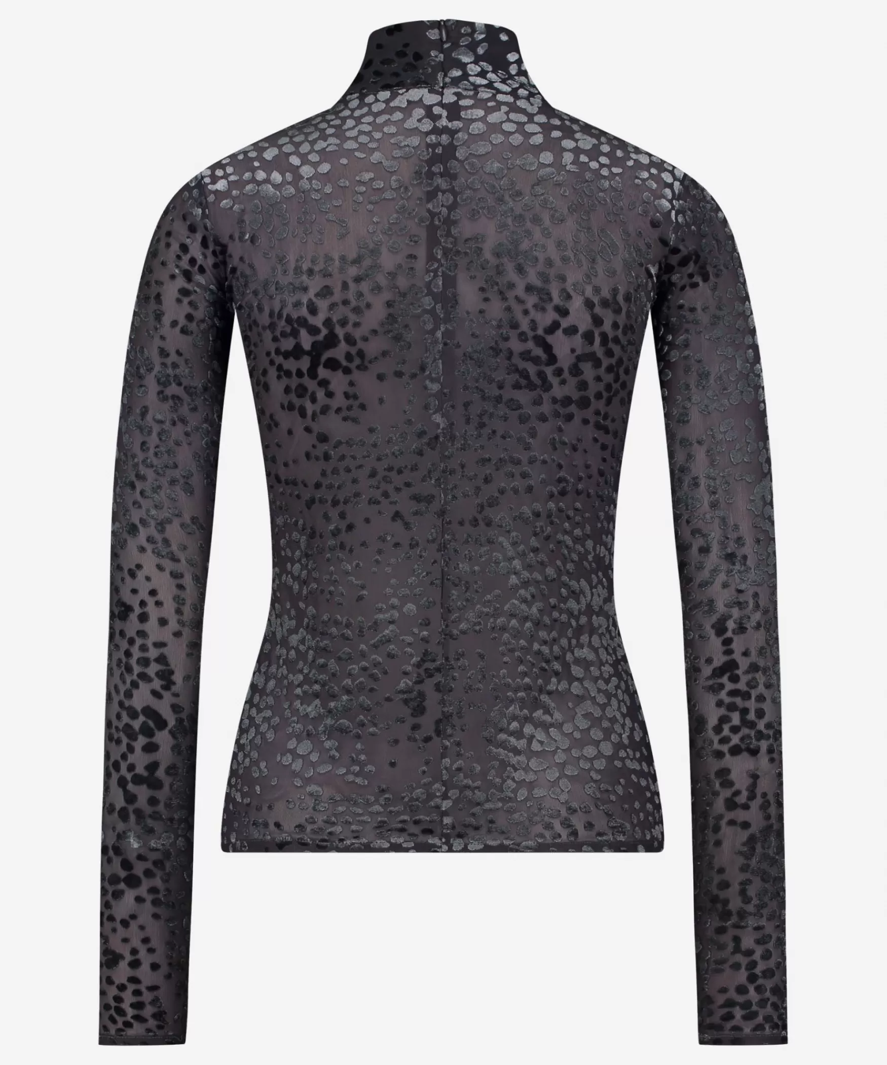 DE TELANA PANTER PRINT TOP IN STONE BLUE|Dit is onze Telana top in de kleur Stone Blue. De top is gemaakt van een fijne stretchstof met een subtiele flock panterprint. Een flock print is een druktechniek waarbij kleding bedrukt wordt met een fluwele stof. De col en het opvallende design geven je look net dat beetje extra edge. Stijltip: Combineer de Telana top met de Pinnie in Midnight Blue voor een stijlvolle ton-sur-ton look.