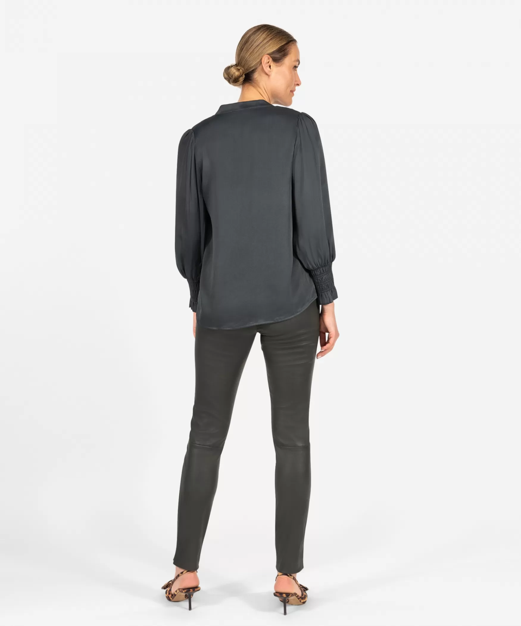 DE THIAGO TOP IN DEEP TEAL|Best basic alert! Ontdek de Thiago blouse in de kleur Deep Teal. De donker groene kleur is de trendkleur dit seizoen en door de basic fit is het item onmisbaar in jouw garderobe. De Thiago is gemaakt van een soepele viscose en valt los om het lichaam heen. De V-hals en ruches aan de mouwen geven de blouse een elegante uitstraling. Combineer de Thiago met de leren Polly pants in dezelfde kleur; Deep Teal. De blouse is ook verkrijgbaar in de kleur Classic Grey.