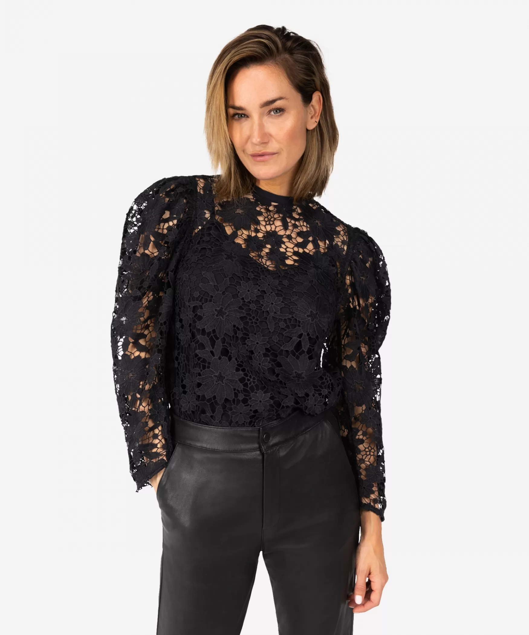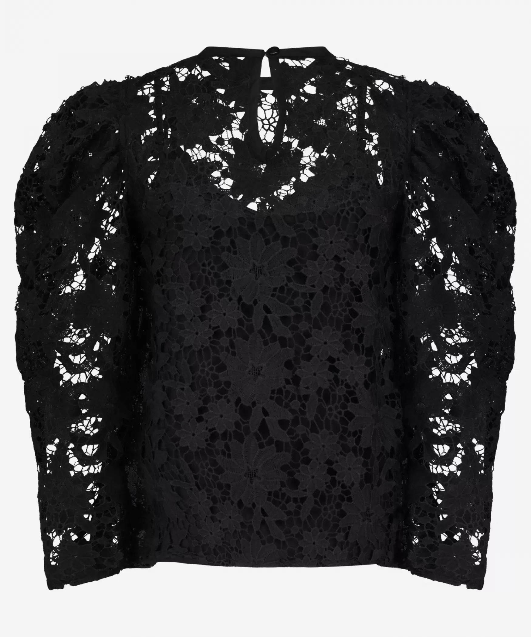 DE TILIA TOP IN BLACKMaak kennis met de Tilia Top in de kleur Black. Deze kanten top met pofmouw is gemaakt van prachtig…