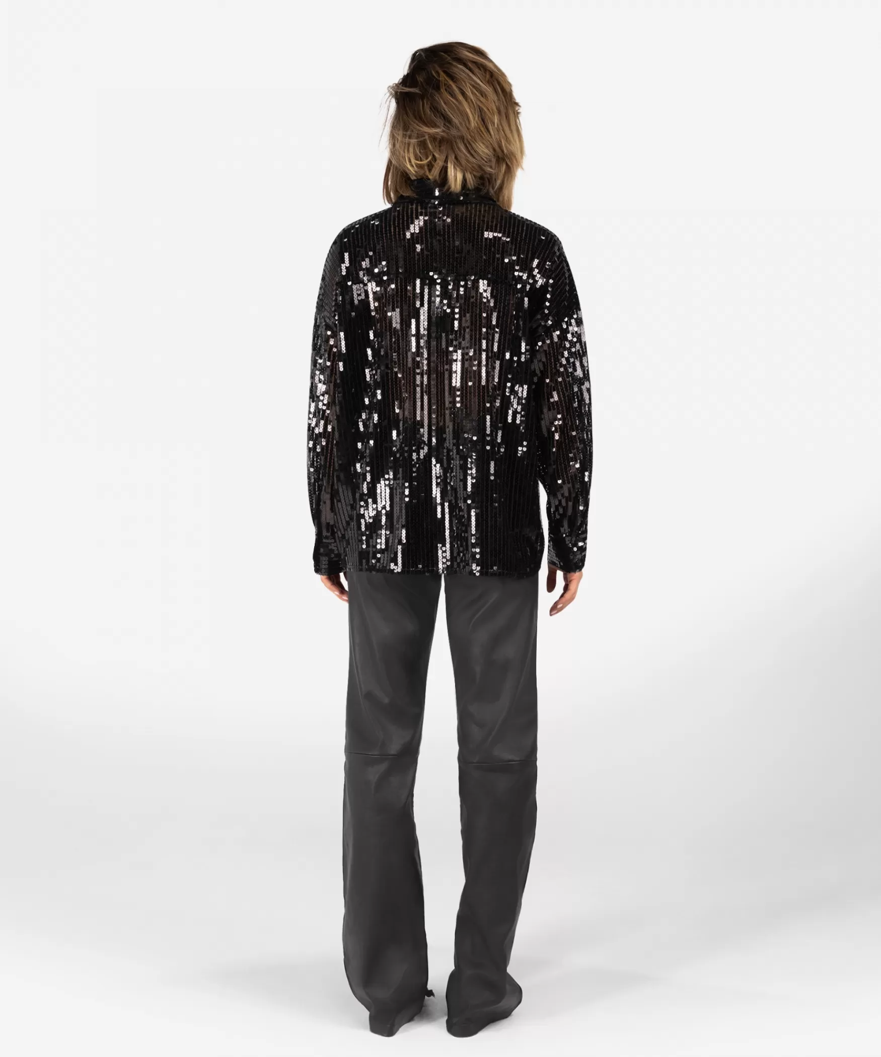 DE TOVO TOP IN BLACK|De zwarte see-through Tovo top heeft prachtige pailetten. De blouse kan worden gesloten door middel van knoopjes maar je kunt de blouse ook leuk strikken aan de voorkant! De Tovo is een feestelijke blouse voor day en night. Stylingtip: draag de Tovo tijdens feestelijke gelegenheden met onze leren Pallora Pants of combineer de blouse met jouw favoriete jeans voor een meer casual look! Op zoek naar een iets meer geklede look? Draag dan onze best-stelling Eden Top eronder.